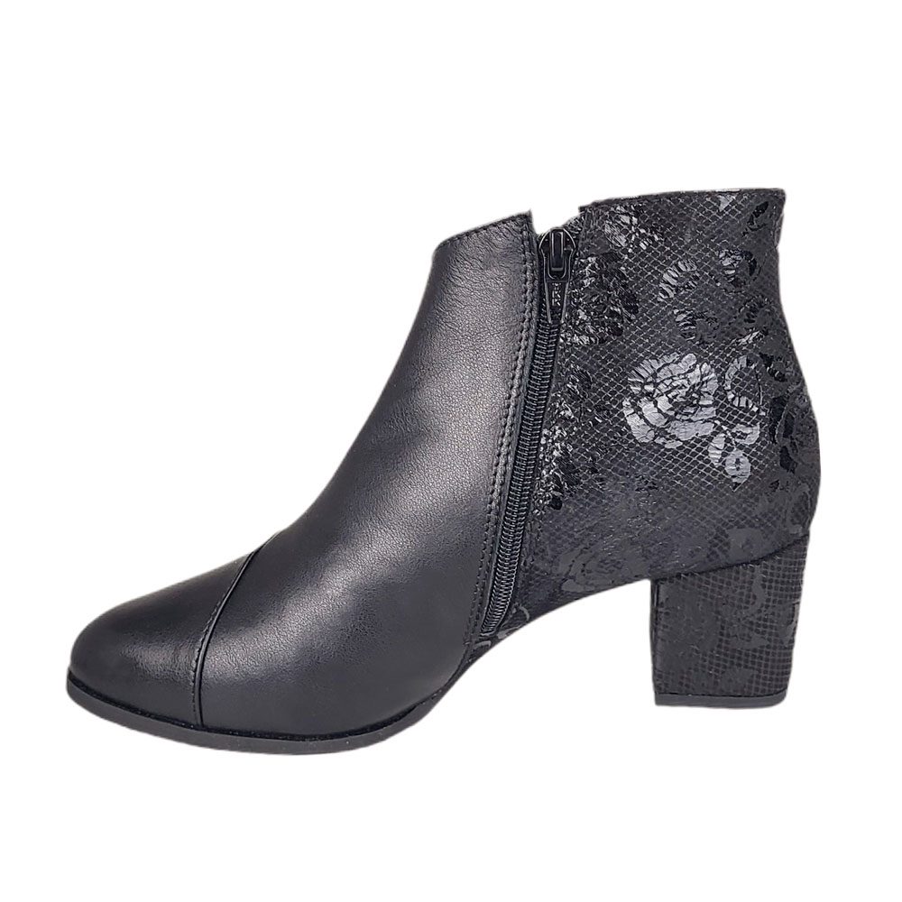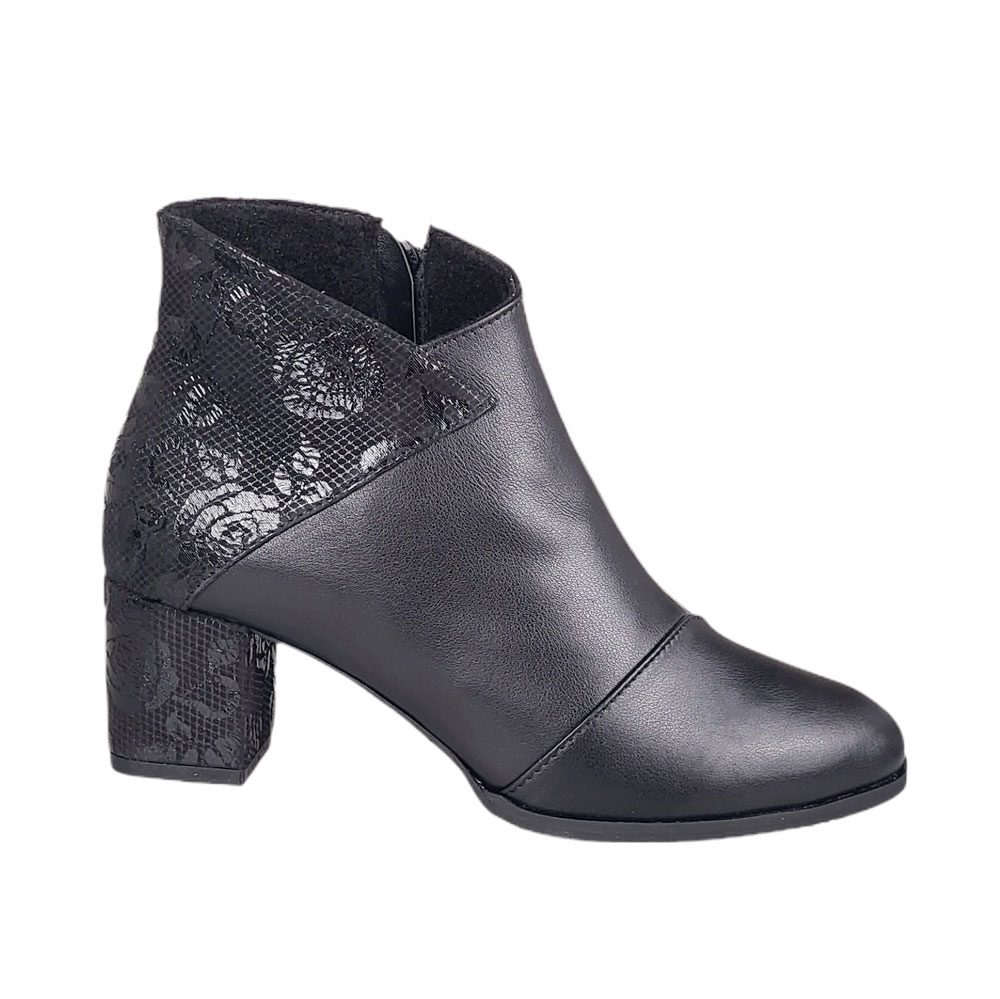 botine negre din piele cu toc mic SV407