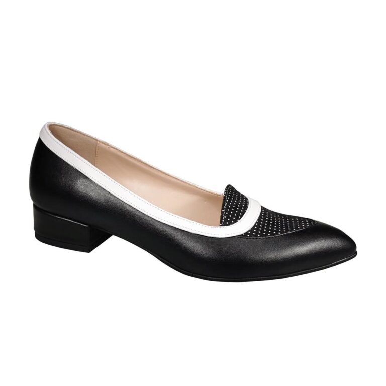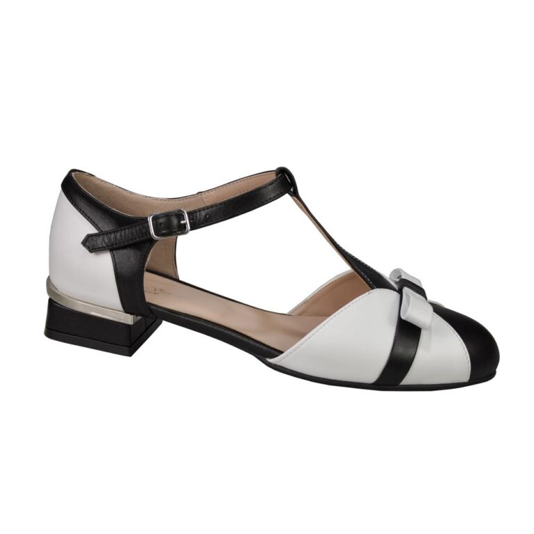 Balerini din piele cu toc mic alb cu negru SV00201