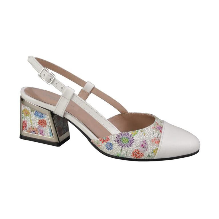 Pantofi eleganti din piele cu toc gros alb SV00474