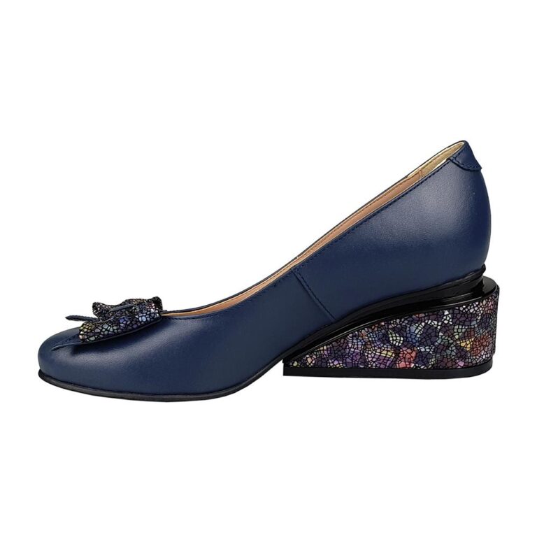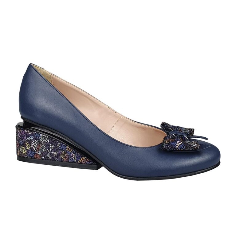 Pantofi eleganti din piele cu toc mic bleumarin SV00670