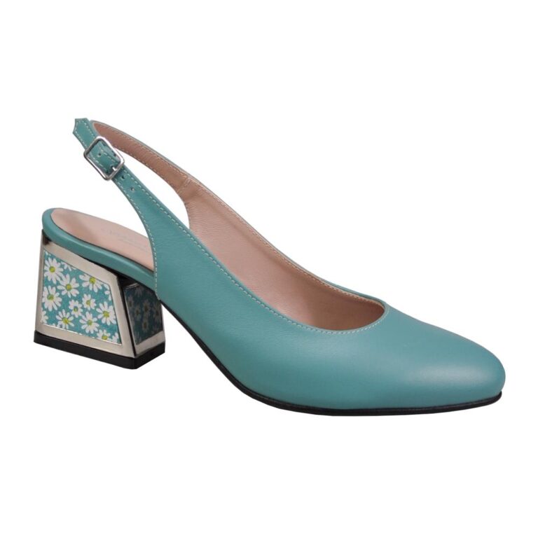 Pantofi eleganti din piele cu toc gros turcoaz SV00475