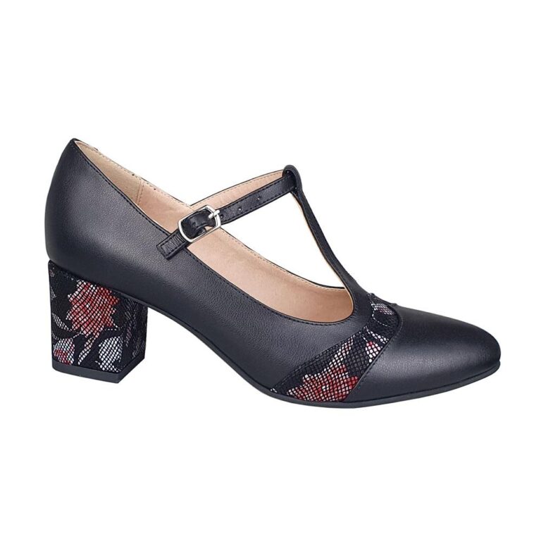 Pantofi eleganti din piele cu toc mic negru SV00761