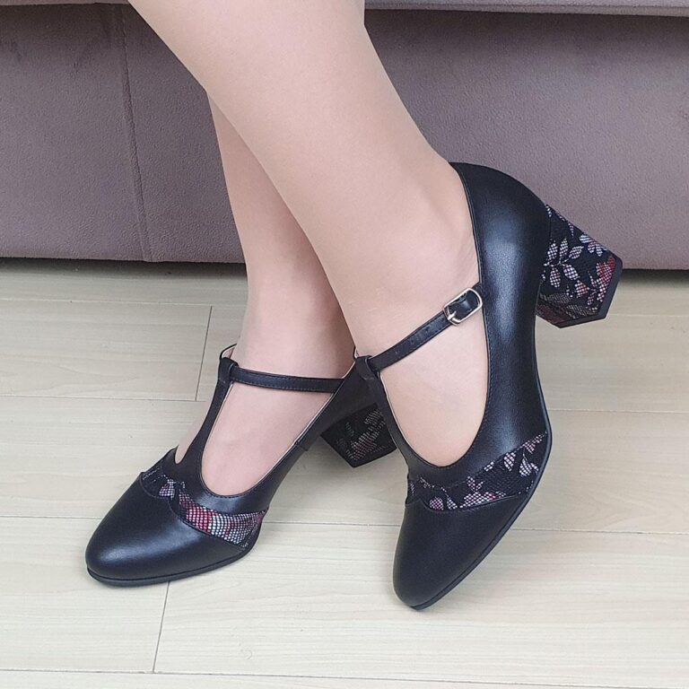 Pantofi eleganti din piele cu toc mic negru SV147
