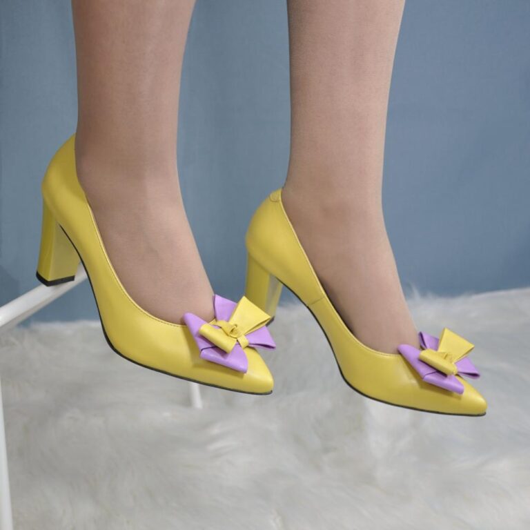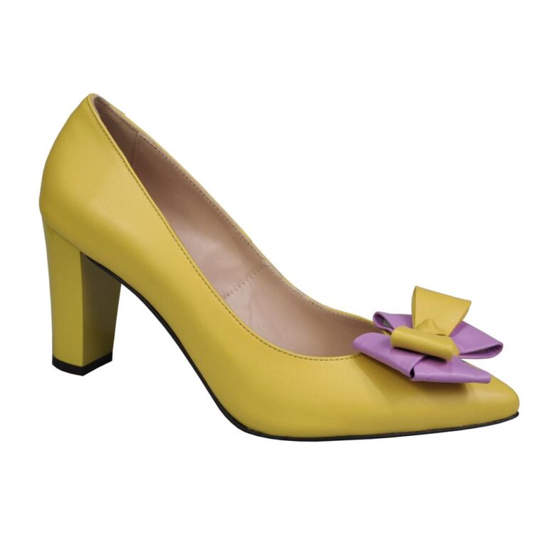 Pantofi eleganti din piele cu toc gros galben cu funda SV00466
