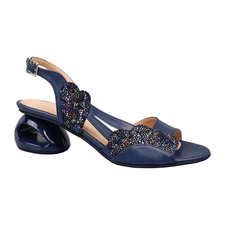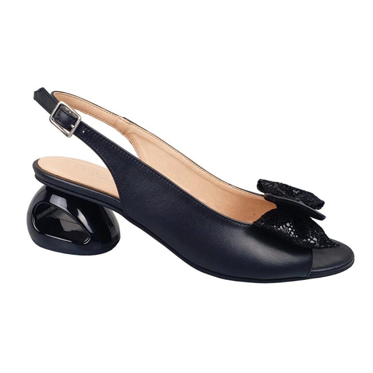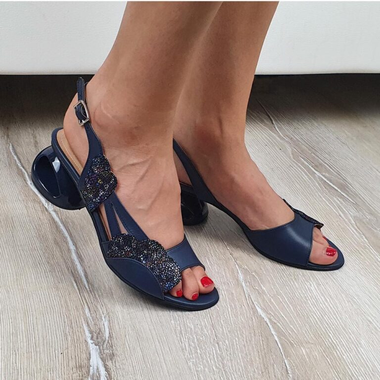Sandale elegante din piele cu toc mic bleumarin SV00243
