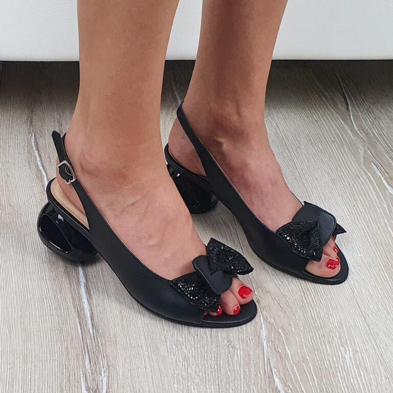 Sandale elegante din piele cu toc mic negre SV00245
