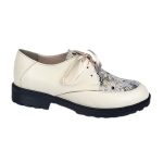 pantofi bej unt dama din piele cu talpa joasa si siret SV334