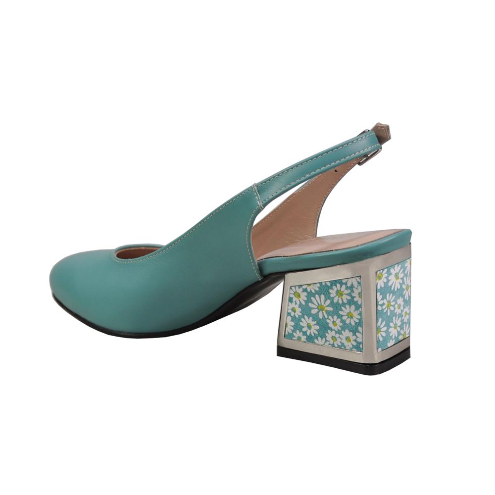 Pantofi eleganti din piele cu toc gros turcoaz SV475
