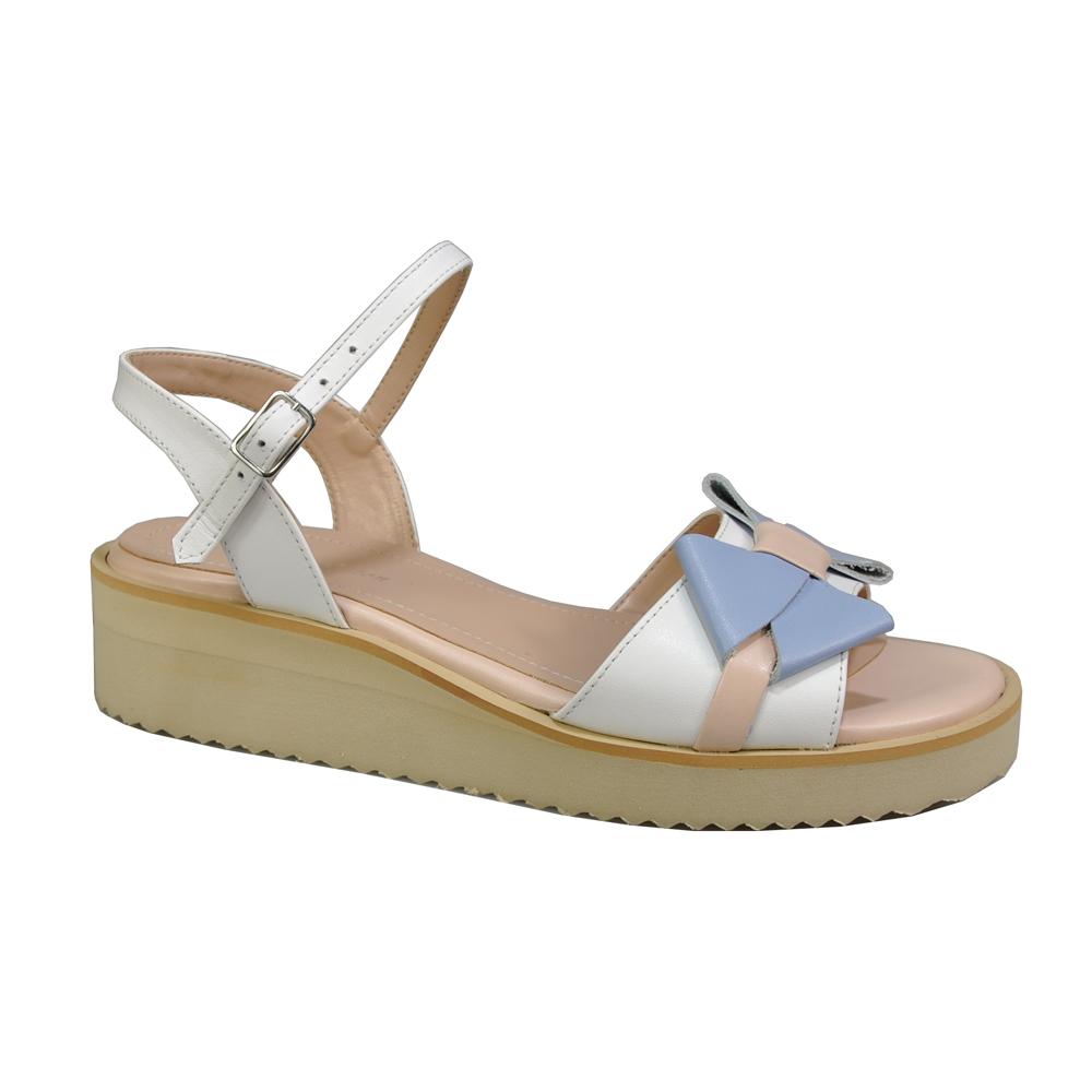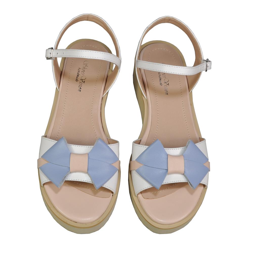 Sandale alb cu bej din piele cu talpa ortopedica foarte usoara SV230