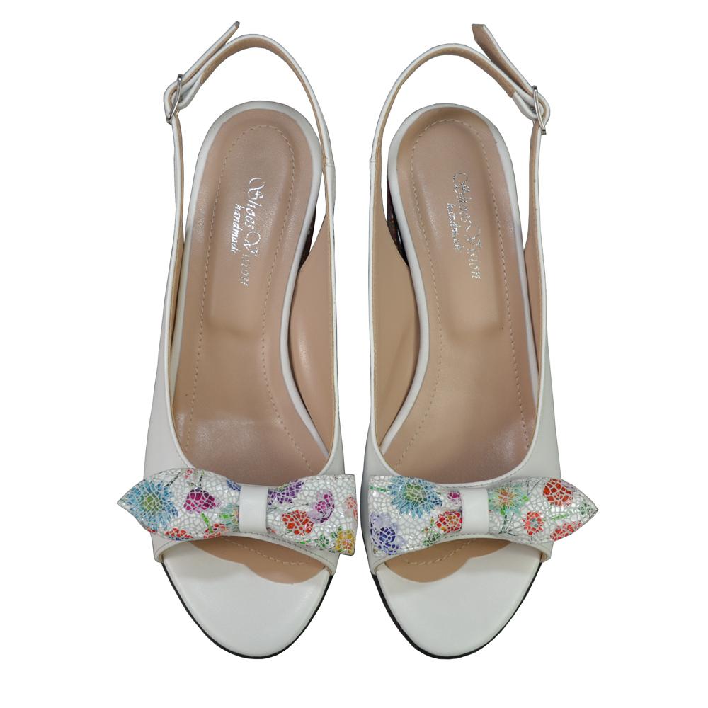 Sandale patrate din piele cu toc mic albe auriu SV250
